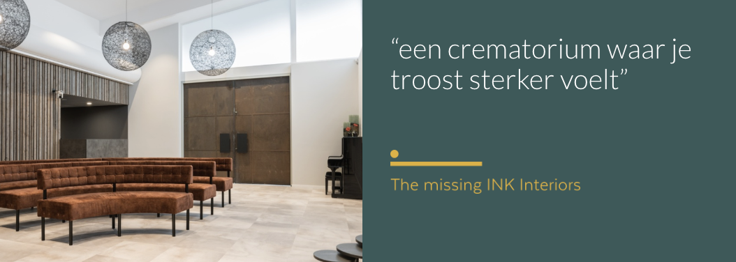 Ink Interiors is de creatieve studio waar interieurontwerpen tot leven komen. Kirsten Reinink heeft een unieke visie voor de inrichting van huizen, kantoorruimtes en, haar specialiteit: crematoria. Met het thema ‘The Missing INK’ zorgt Ink Interiors ervoor dat haar campagne in de juiste media overal zichtbaar is.